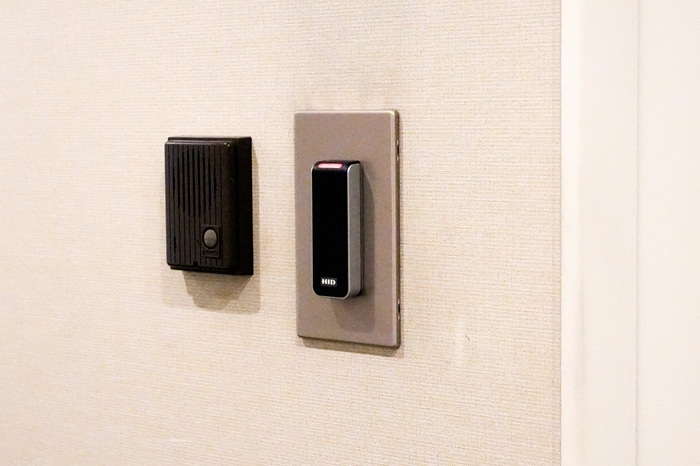 以前は他社の入退室管理システムを使用していましたが、機能が限定的なうえにコストがかさんでいたため、乗り換えを検討していました。ちょうどその頃、勤怠管理に使用していた『奉行Edge 勤怠管理クラウド』との連携が可能なセキュリティ製品を探していました。その中で、オービックビジネスコンサルタントさんから紹介を受けたのがエーティーワークスさんの『iDoors』でした。導入工事は2024年8月、お盆期間を利用して行いました。対象エリアは8階執務エリアで入退室管理、6階会議室と倉庫エリアで入室のみ管理の構成です。長期的なコスト面やAPI連携が可能なクラウド型であることも、決め手になりました。